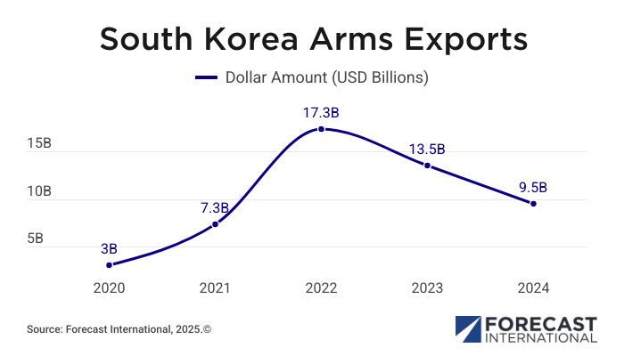 The upshot is that South Korean exports are now booming, in part due to the Russian invasion of Ukraine, but also due to order backlogs and production bottlenecks confronting U.S. and European competitors. As a result the country's arms exports have continued to push into new foreign markets and achieve sales increases from $7.3 billion in 2021 to approaching $20 billion in 2024.
